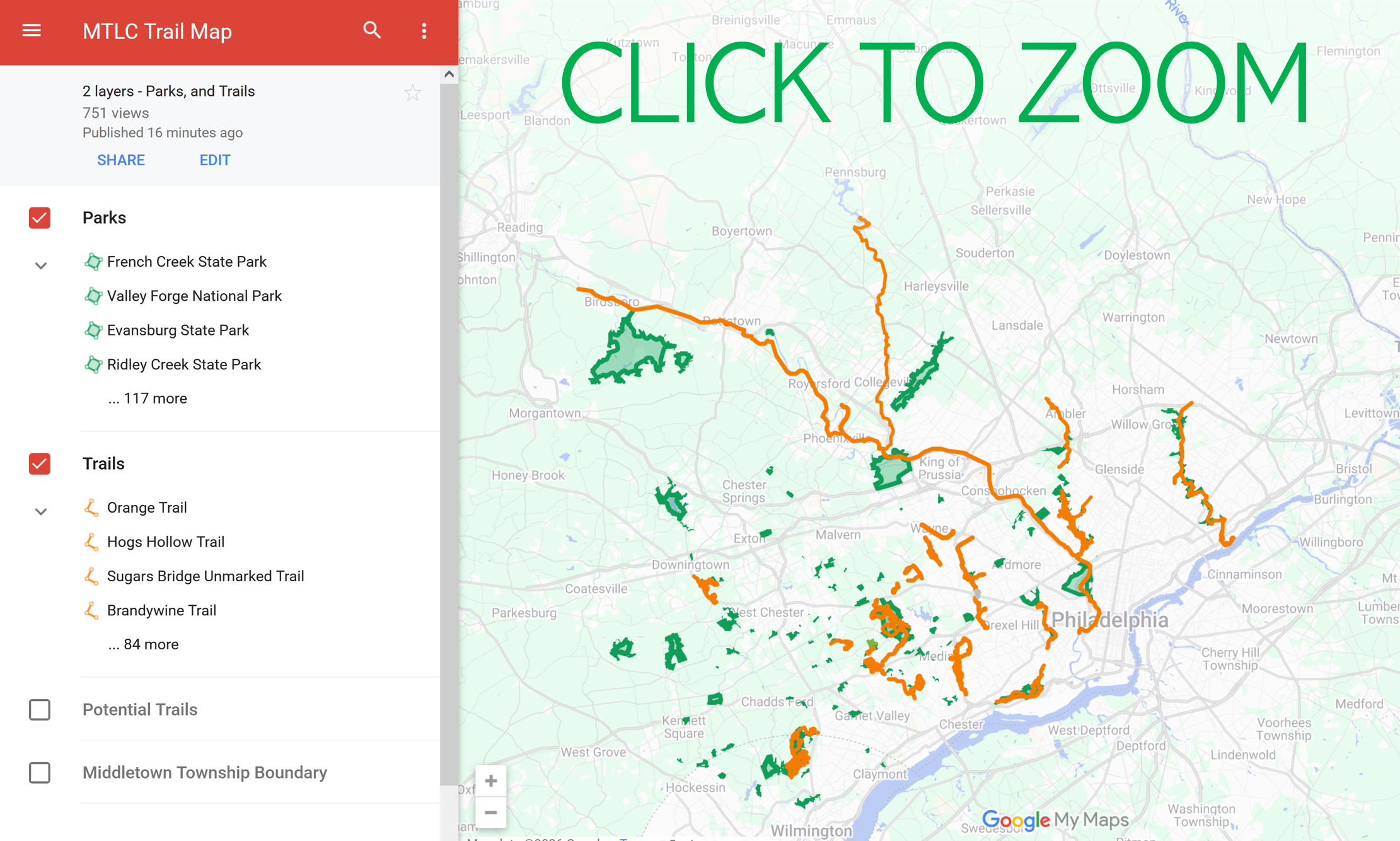Map of Philadelphia’s Parks and Trails This map contains most of the parks and trails north of the Delaware River within about 20 miles of Philadelphia.Work in progress. Outlines may be rough.